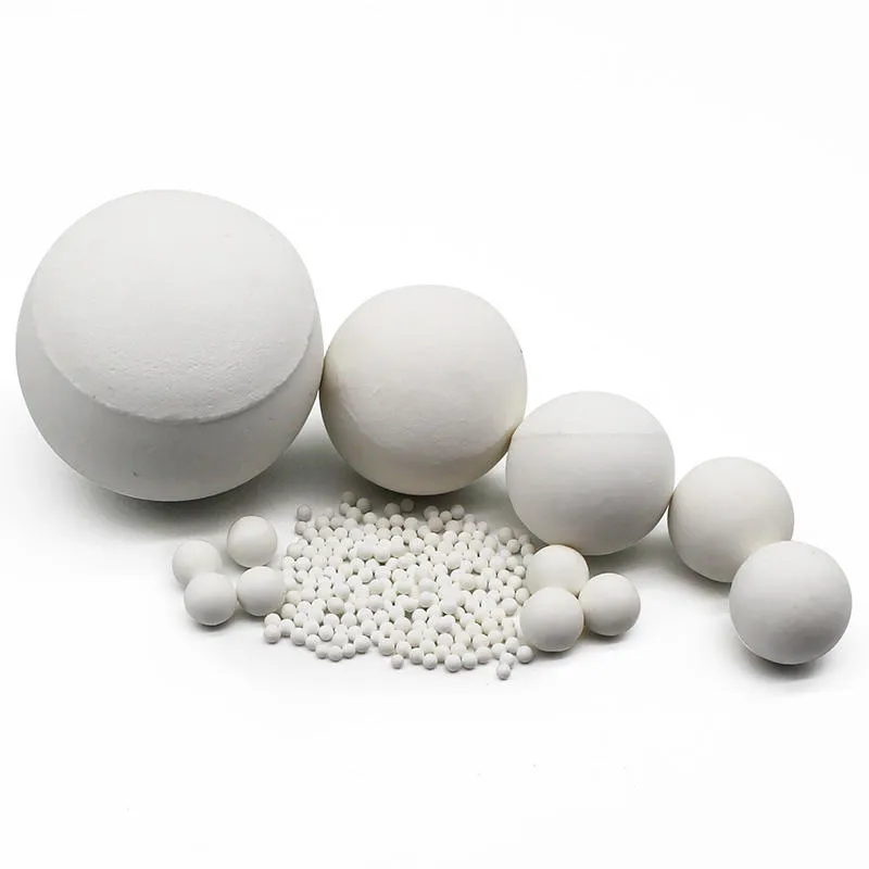 Керамические шары из оксида алюминия — это высокоэффективные керамические измельчающие тела и наполнители, изготавливаемые в основном из высокочистого оксида алюминия (Al₂O₃) путем смешивания, формования и высокотемпературного спекания (температура спекания ≥1600 °C). В зависимости от содержания оксида алюминия они подразделяются на шары с низким содержанием оксида алюминия (содержание Al₂O₃ 60–75 %), , шарики со средним содержанием оксида алюминия (содержание Al₂O₃ 80–85 %), шарики с высоким содержанием оксида алюминия (содержание Al₂O₃ 90–95 %) и шарики с ультравысоким содержанием оксида алюминия (содержание Al₂O₃ ≥99 %). Диаметр варьируется от Φ3 мм до Φ120 мм, с вариантами сферической, цилиндрической и нерегулярной формы для удовлетворения различных эксплуатационных требований.