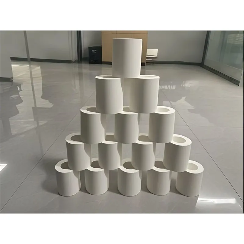Монолитная керамическая кольцевая труба является ключевым компонентом конвейерных систем в современной промышленности. Изготовленная из высококачественного керамического сырья, такого как оксид алюминия чистотой более 95%, она подвергается высокотоннажному изостатическому прессованию и высокотемпературному обжигу. Эта труба не только обладает превосходной износостойкостью и твёрдостью, превышающей HRA90, но и благодаря бесшовной конструкции эффективно предотвращает утечки и коррозию, изолируя стальную трубу от контакта транспортируемой среды. Она может стабильно работать при температурах до 750 °C, а её гладкая, нелипкая внутренняя поверхность обеспечивает широкое применение в таких отраслях, как производство литиевых аккумуляторов, химическая промышленность и транспортировка порошков, что значительно повышает эффективность конвейерной транспортировки и срок службы трубы.